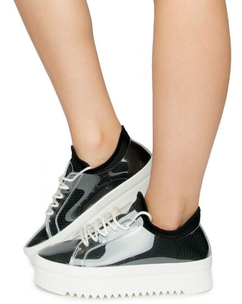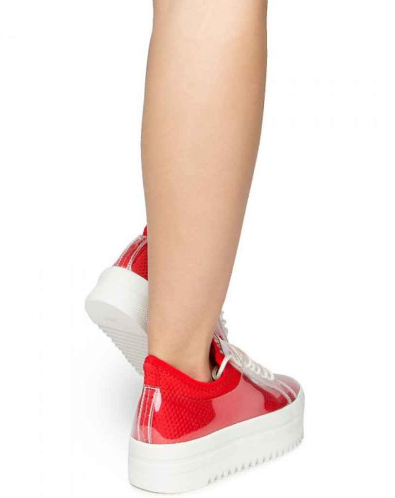 These sneakers give a fun twist to a traditional sneaker with the clear/lucite trendy detail; choose from Red or Black.