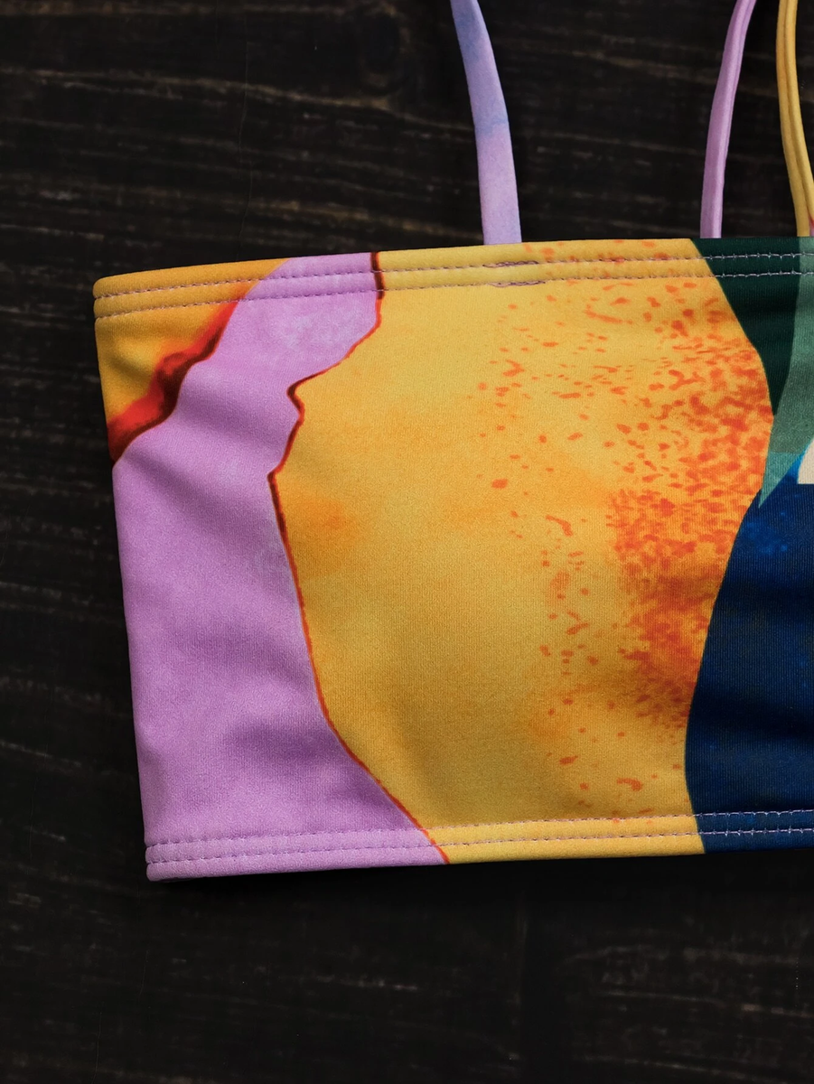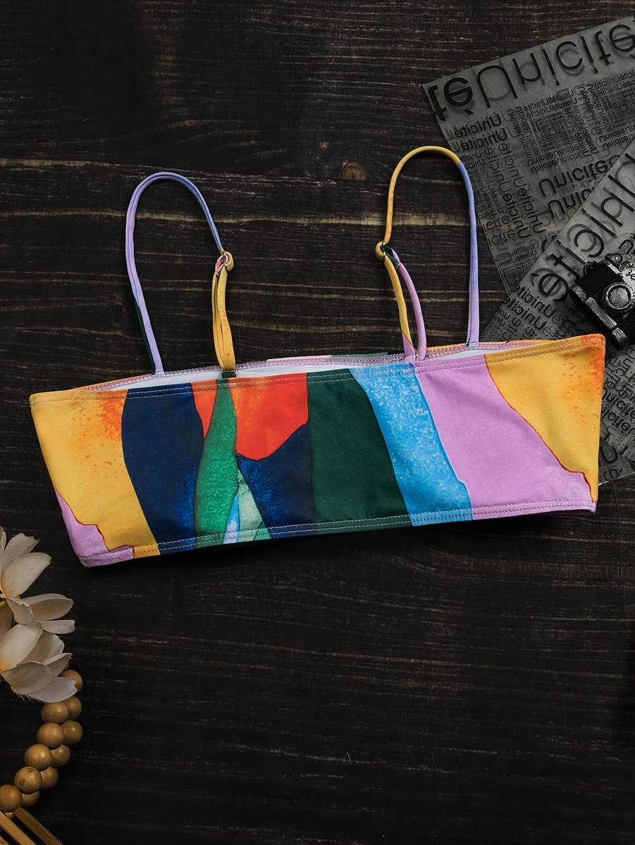 This boho chic 2 piece swimsuit features a colorful abstract print, it will be your new favorite this summer!